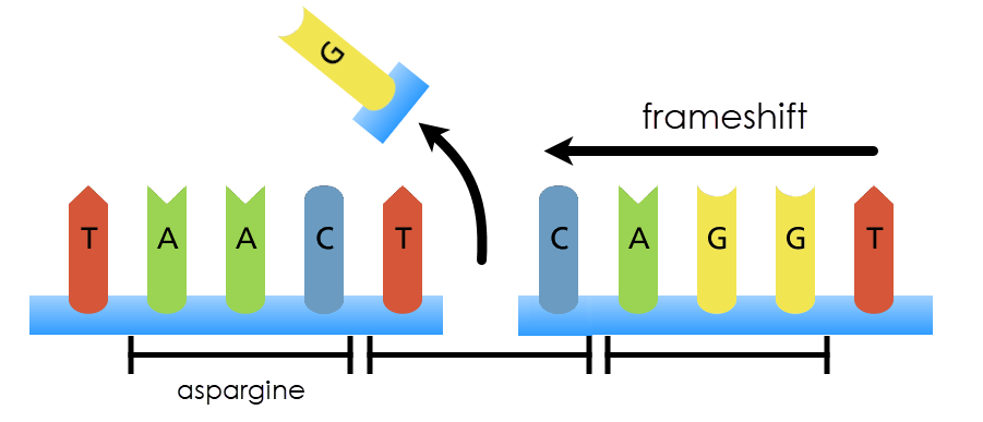 - Insertions (We inserted a C, so the remaining nucleotides shifted to make space.)